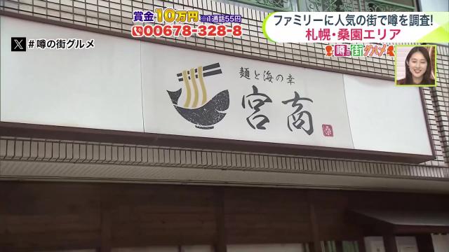 JR桑園駅から南に進むと北5条・手稲通の手前にあるのが「麺と海の幸 宮商」。