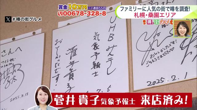 お店に入ると目に飛び込んできたのが、気象予報士の菅井貴子さんのサイン。宇野章午アナウンサーも常連なんですって。