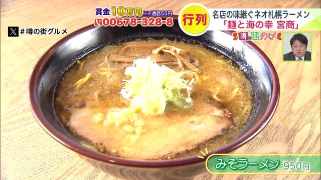 「麺と海の幸 宮商」は、札幌の名店で18年修業した代表の宮川博行さんが営むお店。濃厚ながら飽きがこないと、オープンからわずか1年で開店前から行列ができる人気店に成長しました。