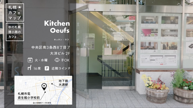 個性的な飲食店やアパレル、オフィスが集まる大洋ビルの2階にあるのが、「Kitchen Oeufs(キッチン・ウフ)」です。卵を使った料理が人気のお店です。