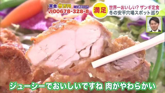 数あるメニューの中でもリピート率が高く人気なのが「ザンギ定食」で、のぼりには「世界一おいしい」と書かれています。