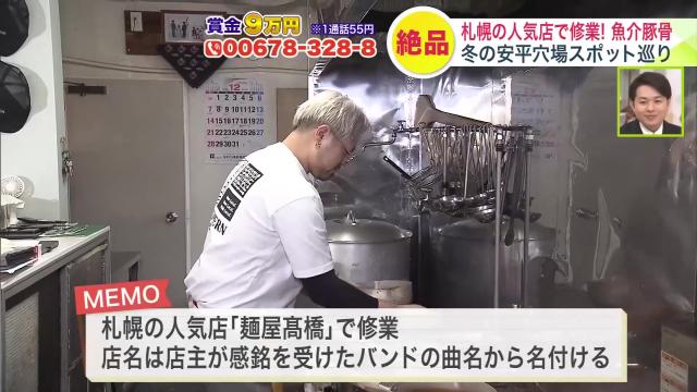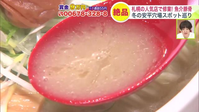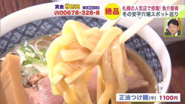 濃厚魚介豚骨が売りの札幌の人気店「麺屋髙橋」で修業した店主・中村潤さんが手がけるスープは、豚骨と煮干し、ネギなどの香味野菜を約10時間かけて煮込んだ、とろみのあるスープが特徴です。