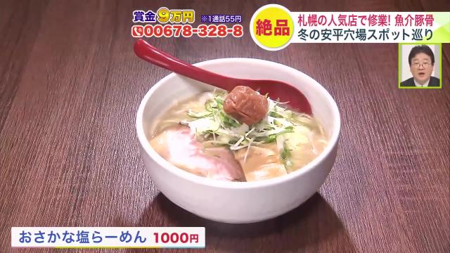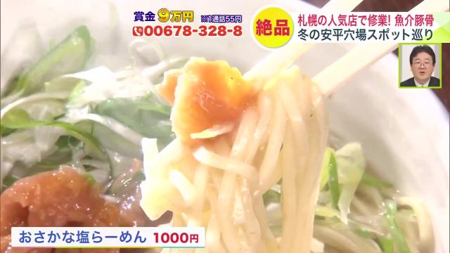 つけ麺の濃厚ダレに和風だしをプラスしたオリジナルラーメン「おさかな塩らーめん 1000円」。