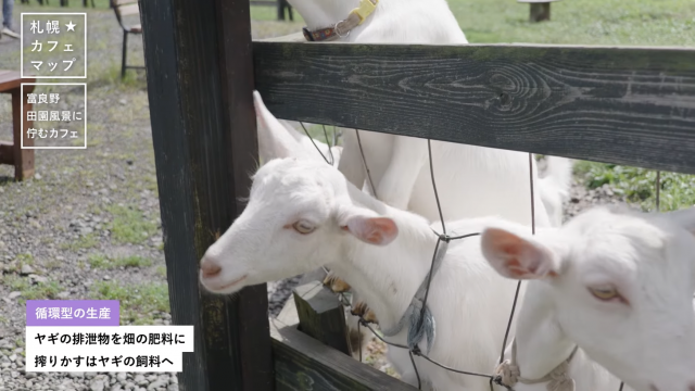 飼育しているヤギの排せつ物を、ブドウ畑の肥料として使用。実ったブドウから果汁を搾ってワインを作り、搾りかすはヤギの飼料になります。