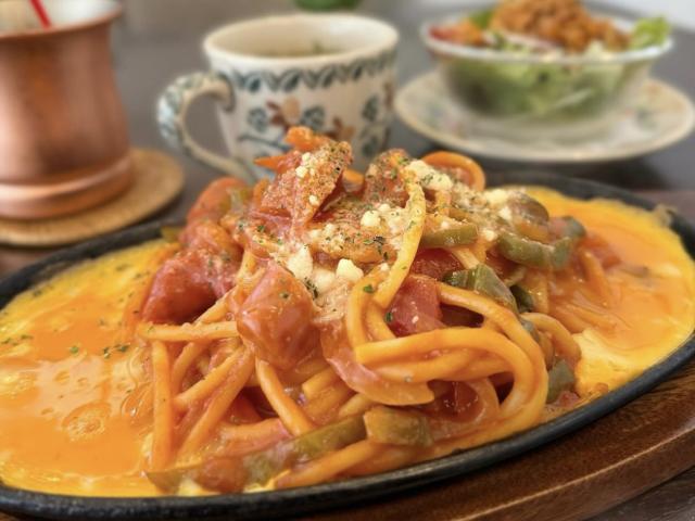 なかでも一番人気なのが「鉄板ナポリタンスパゲッティ 990円(税込)」。2.2mmの太めの麺が、濃厚な自家製トマトソースによく絡みます。