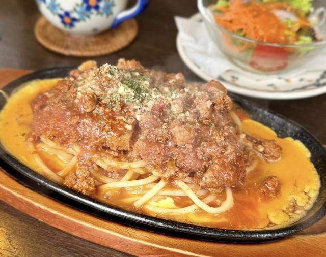 そして、お店のイチオシは釧路名物でもある「鉄板スパカツ 1,265円(税込)」。スパゲッティにカツを乗せ、上からミートソースをかけたボリューム満点の一皿です。