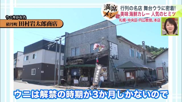 積丹町にある系列店「田村岩太郎商店」。ウニ丼が有名ですが、ウニ漁は6〜8月の3ヶ月しか解禁されません。