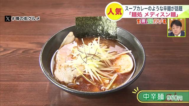『中辛麺 950円(税込)』は、スープを口に含むとピリピリっと辛みが広がります。