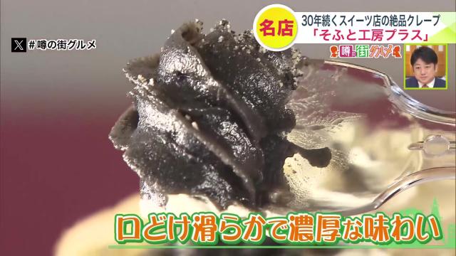 もちっとする黒ごまのクレープとは違った、サクサク食感のクレープが味わえます。