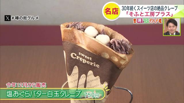 『塩おぐらバター白玉クレープ 750円(税込)』は、生地にバターが染み込んでいるサクサク食感の新メニュー。