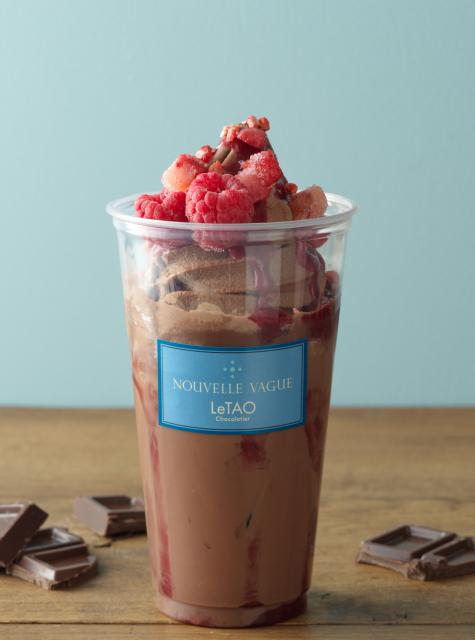 あっさりとした甘みのショコラドリンクをベースに、同店自慢のクレームグラッセ(ソフトクリーム)「ルショコラ」をオン。