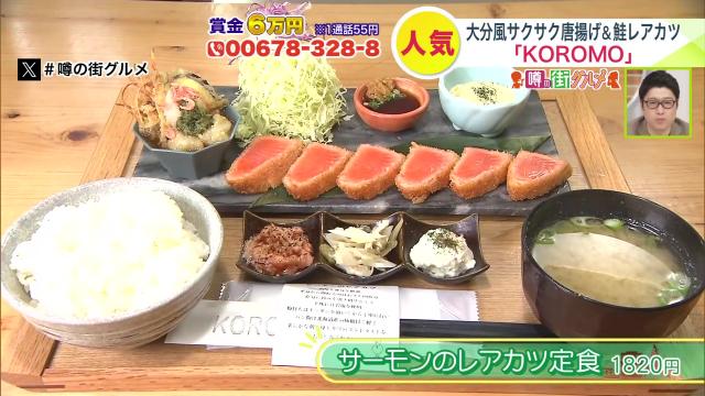 『サーモンのレアカツ定食 1,820円(税込)』では、やわらかな刺身と衣のコントラストが楽しめます。