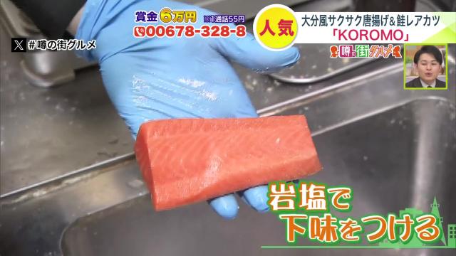 存分にうま味を引き出せるよう下味には岩塩を使用し、サーモンの甘みを引き出します。