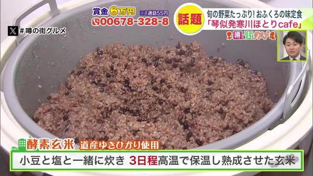 道産のゆきひかりを使用した酵素玄米は、小豆と塩と一緒に炊き3日ほど高温で保温に。