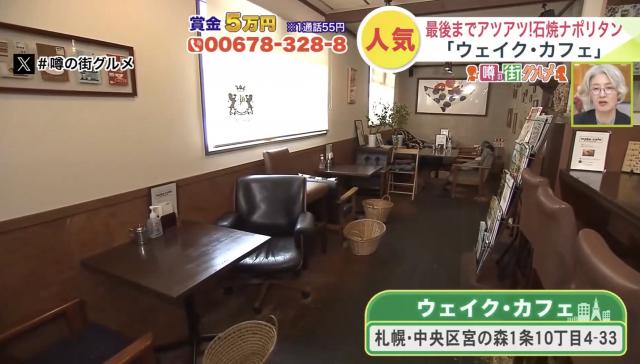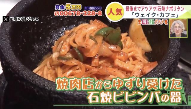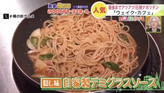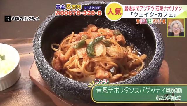 グツグツと熱々で運ばれてくる“石焼きナポリタン”がおいしい「ウェイク・カフェ」。冷えた体を芯から温めてくれます。
