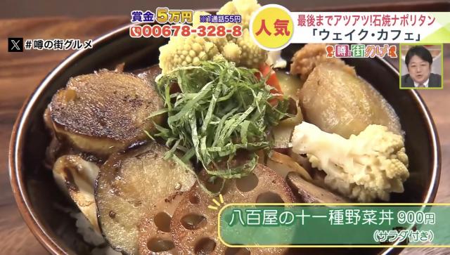 すぎはらで仕入れた野菜をふんだんに使ったのが、「八百屋の十一種野菜丼(サラダ付き)」(900円)。