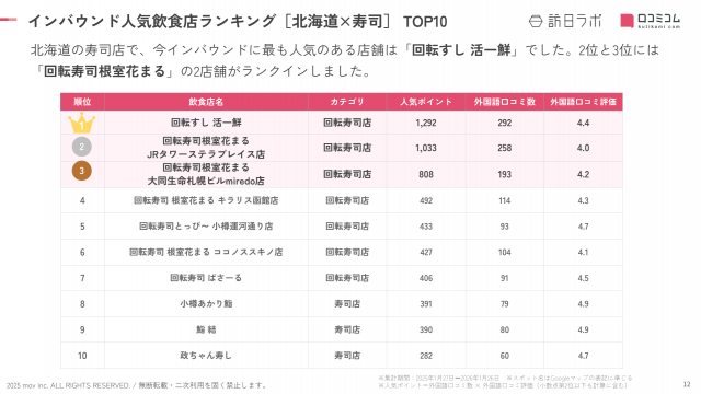 インバウンド人気飲食店【北海道寿司】ランキングで堂々の1位!