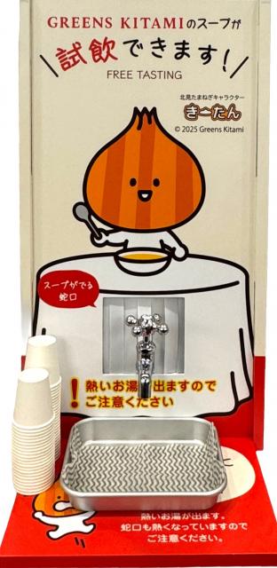 蛇口から提供されるスープは、生産量日本一を誇る「北見たまねぎ」を使用した「北海道オニオンスープ」と、北海道産のホタテを使用した「北海道ほたてスープ」の2種類。
