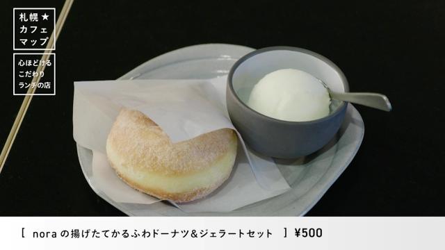 デザートの中の一番人気は、「noraの揚げたてかるふわドーナツ&ジェラートセット」(500円)。