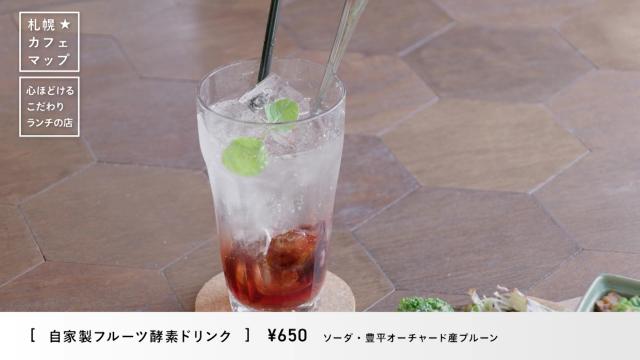 「自家製フルーツ酵素ドリンク」(650円、ソーダ・豊平オーチャード産プルーン)は、市内の果樹園で取れたプルーンを使用しています。
