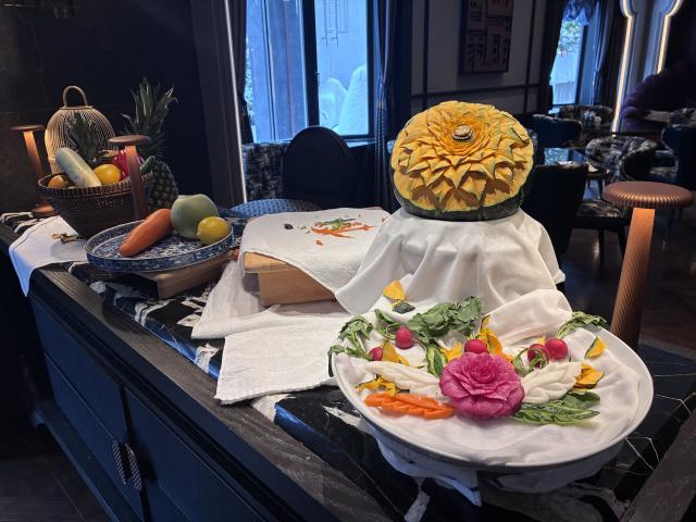 ビュッフェ台とは別のコーナーにあったのは、花のように彫られて飾られた色とりどりの野菜。