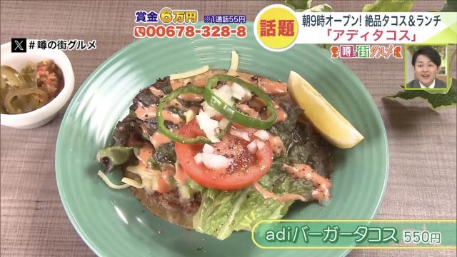 「adiバーガータコス」(550円)は、ユニークな創作メニュー。