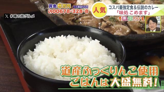 ごはんは道産ふっくりんこを使用。そしてなんと、大盛り無料! 米価格高騰の折、これはうれしいサービスですね。