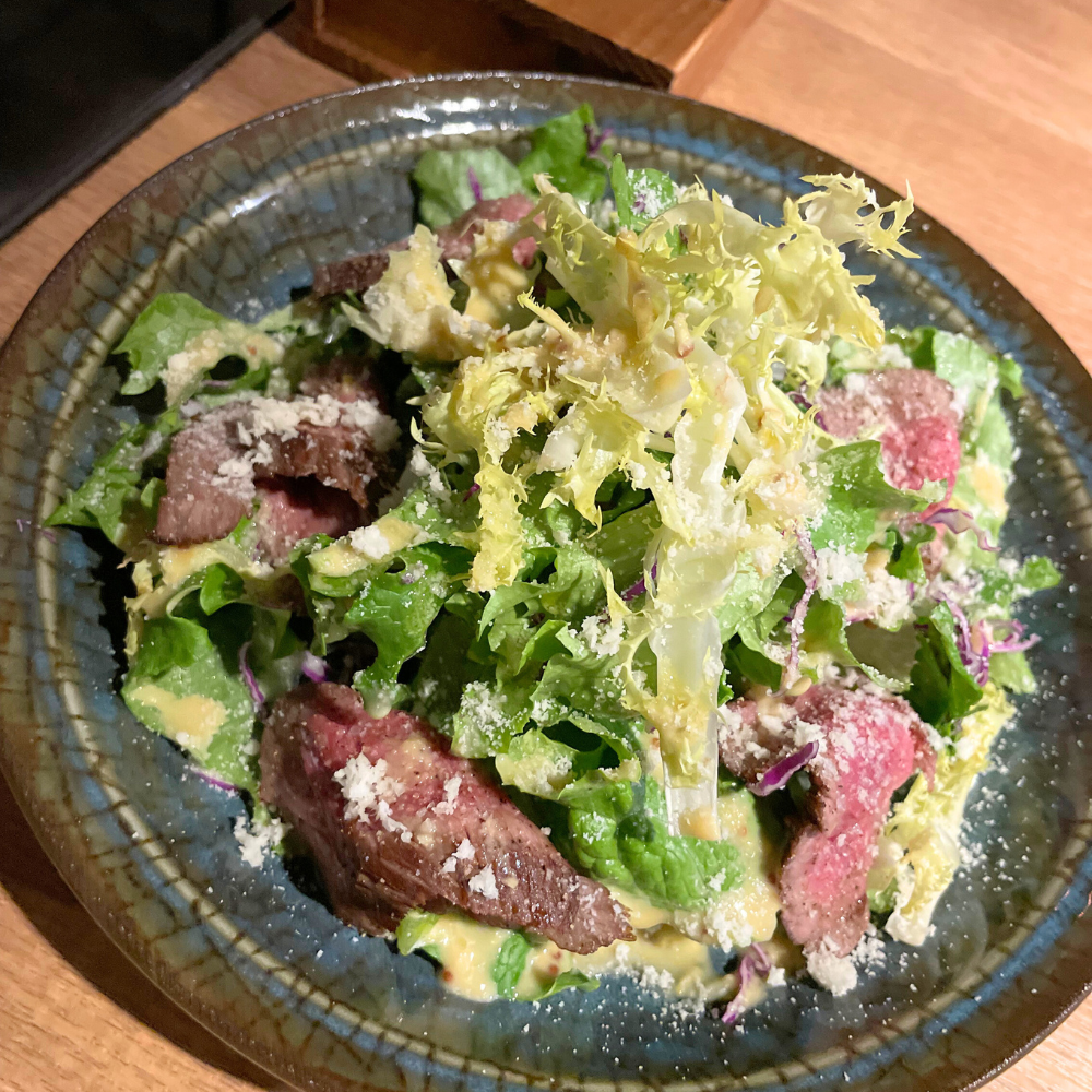 厚み、香り、最高すぎます。そして口に運べば……香ばしいジューシーな焼き目と、赤身の柔らかさのバランスに悶絶。和牛もドライエイジングビーフも、それぞれの良さがあり甲乙つけがたい。塩で楽しんだり、山わさびをつけてみたり、一口一口「肉と向き合う」時間。これこれ!これを求めていたの!
