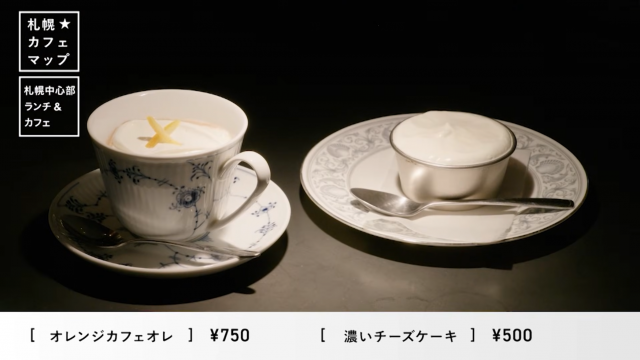 「オレンジカフェオレ」(750円)とデザートの[濃いチーズケーキ」(500円)という組み合わせもおすすめです。
