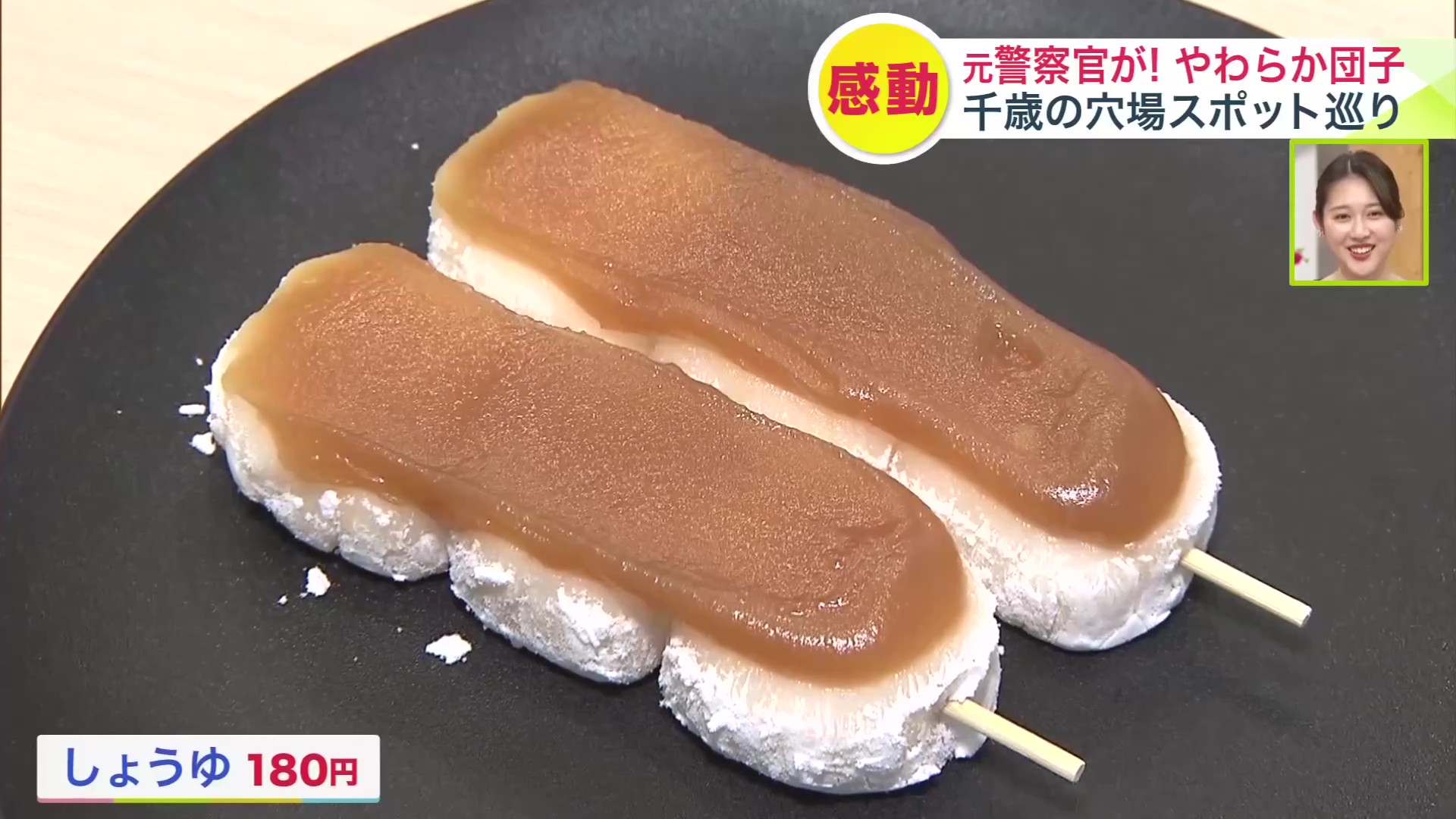 お団子は4種類あり、なかでもおすすめは「しょうゆ 180円(税込)」。一般的なみたらしとはちがい、白あんにお醤油を混ぜたものなんだそうですよ。