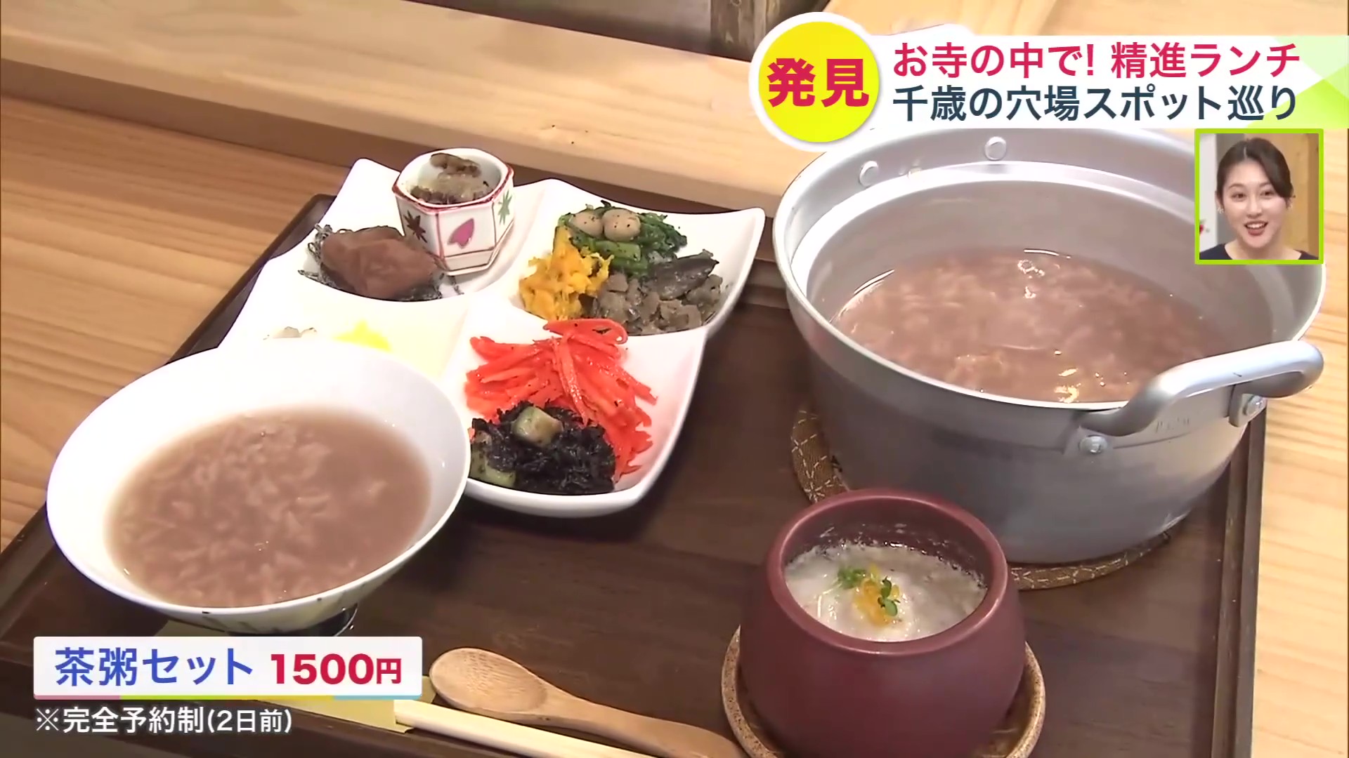 佐藤さんがいただいたのは、生米をほうじ茶で炊いた「茶粥セット 1,500円(税込)」。※完全予約制(2日前)