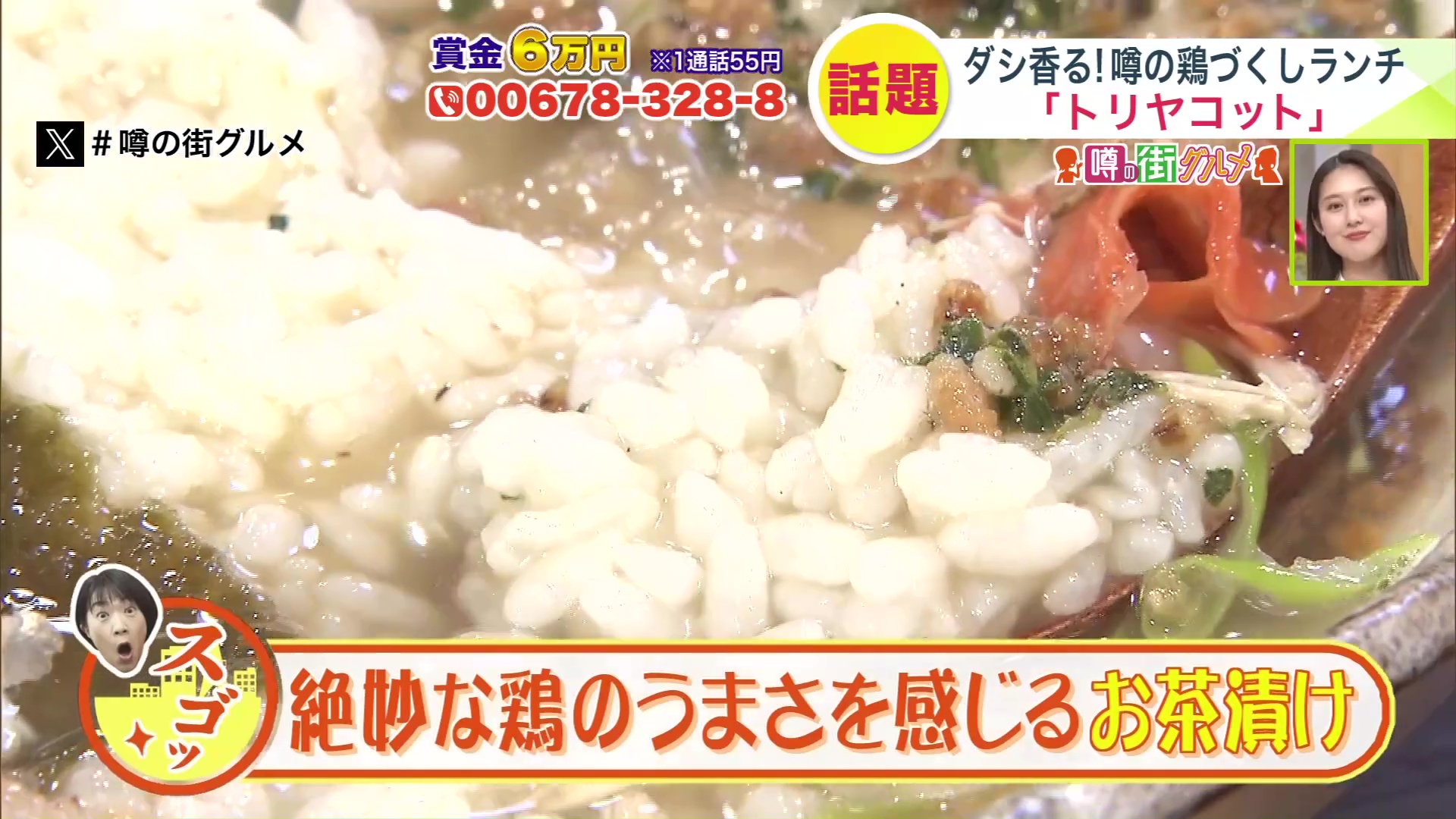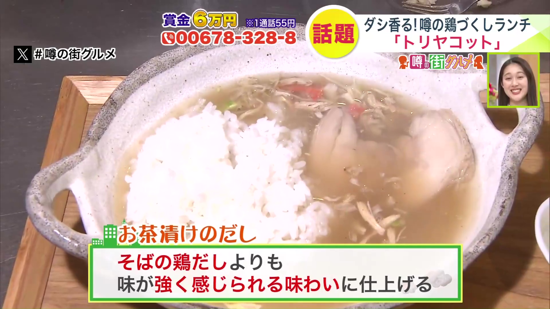 玄米茶の香ばしさも合わさって、絶妙な鶏のうまさを感じるお茶漬けです。