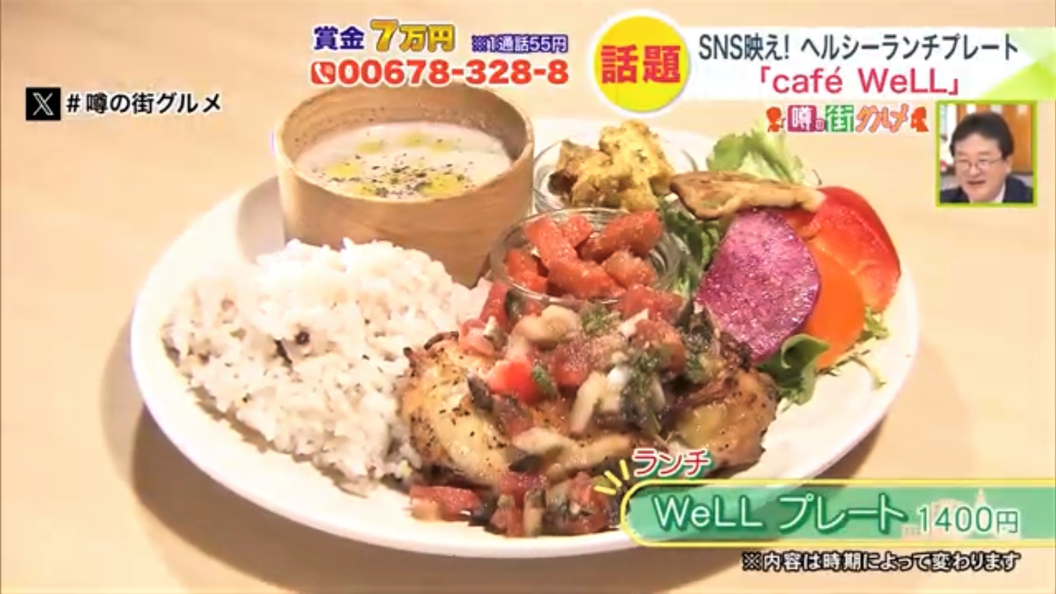 人気の一品が、ランチの「WeLLプレート」(1400円)。料理の内容は時期によって変わります。