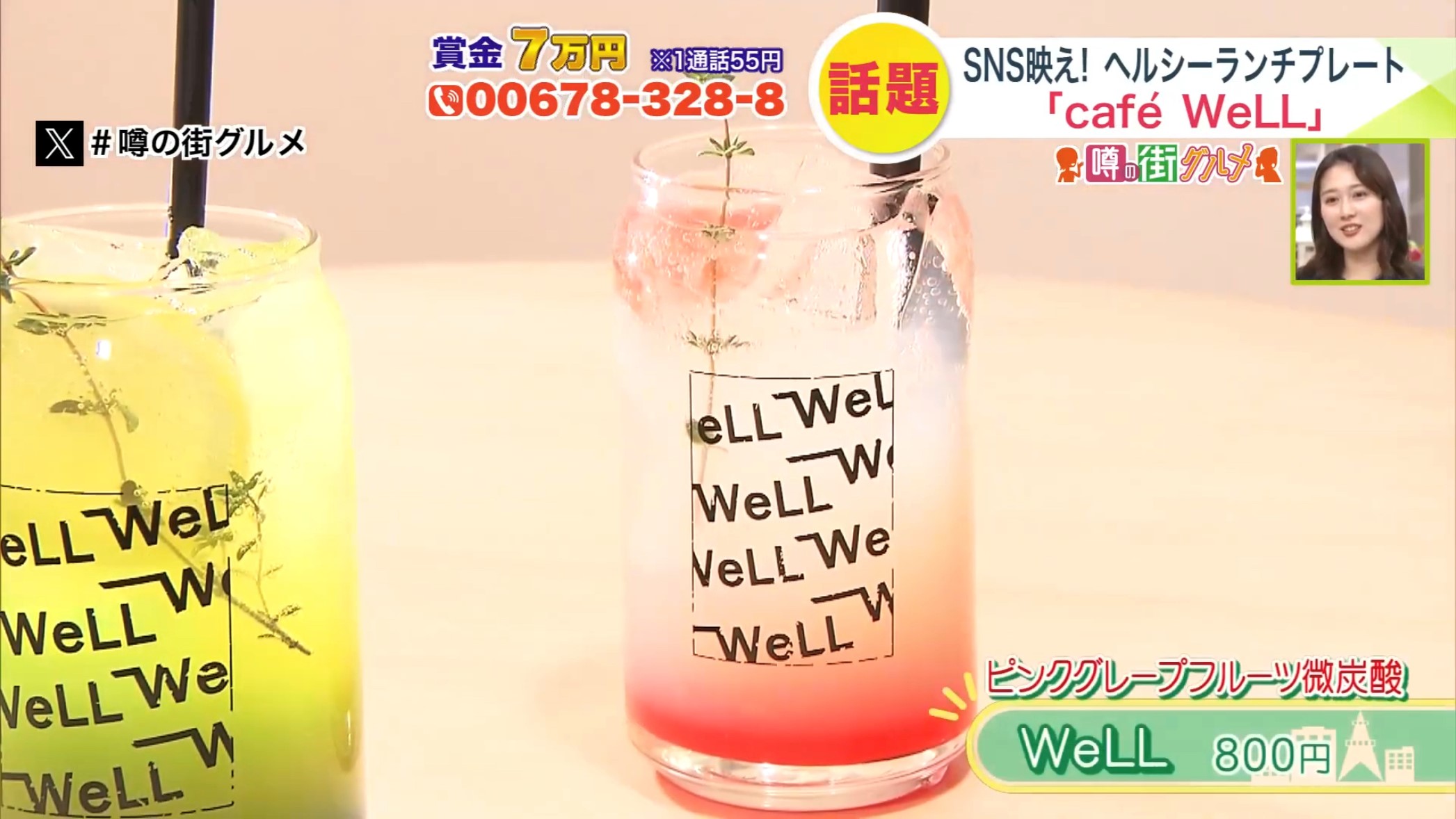 ドリンクの「WeLL」(800円)は、ピンクグレープフルーツをベースにした微炭酸。
