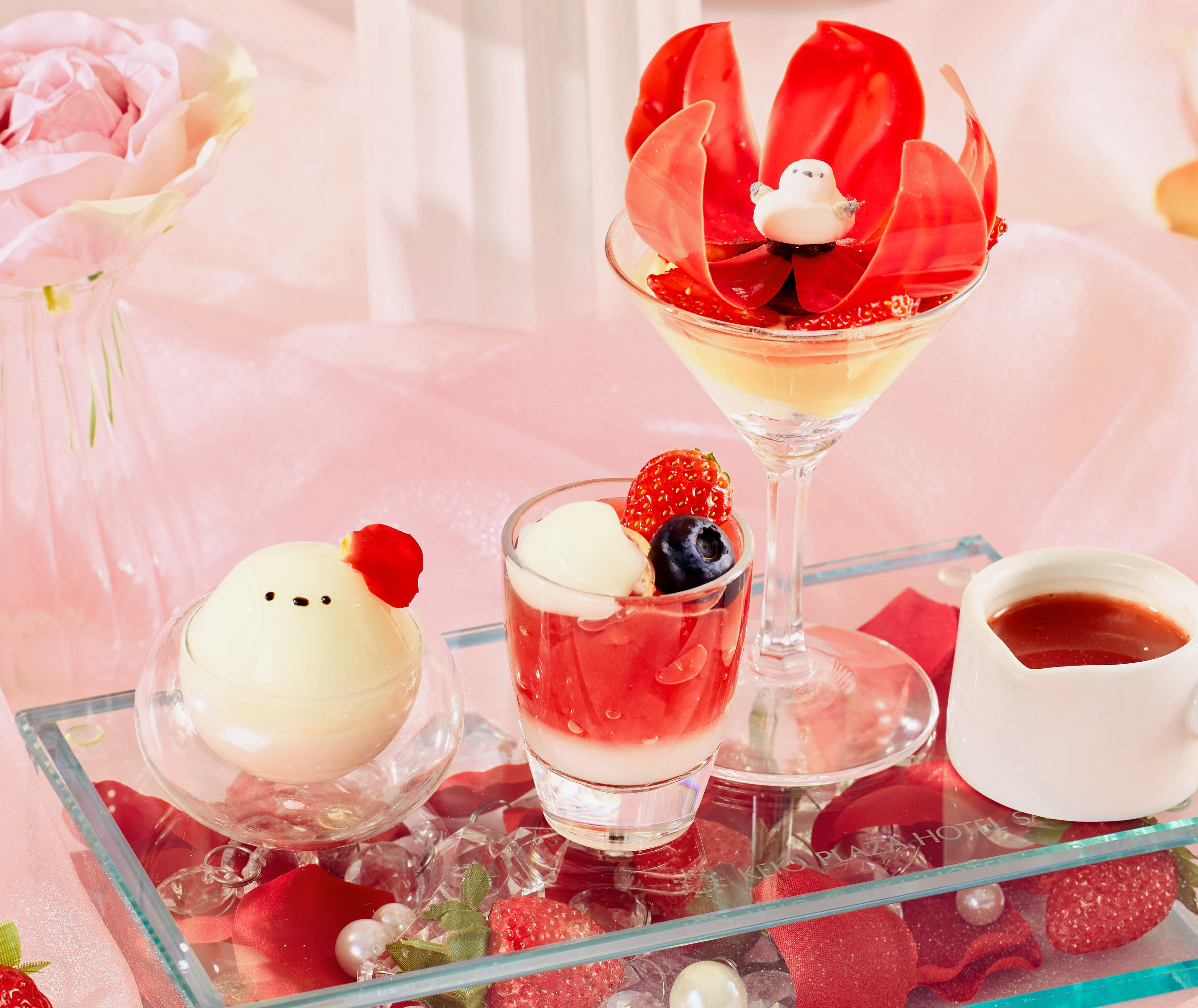 苺を丸ごと使ったフレジェやカヌレなど、春らしいスイーツが大集合。チョコレートの赤い花の中に隠れたシマエナガや、前回大人気だった「ぷるぷる揺れるシマエナガゼリー」も待望の再登場を果たしています。一口食べるごとに笑顔になってしまいますね。