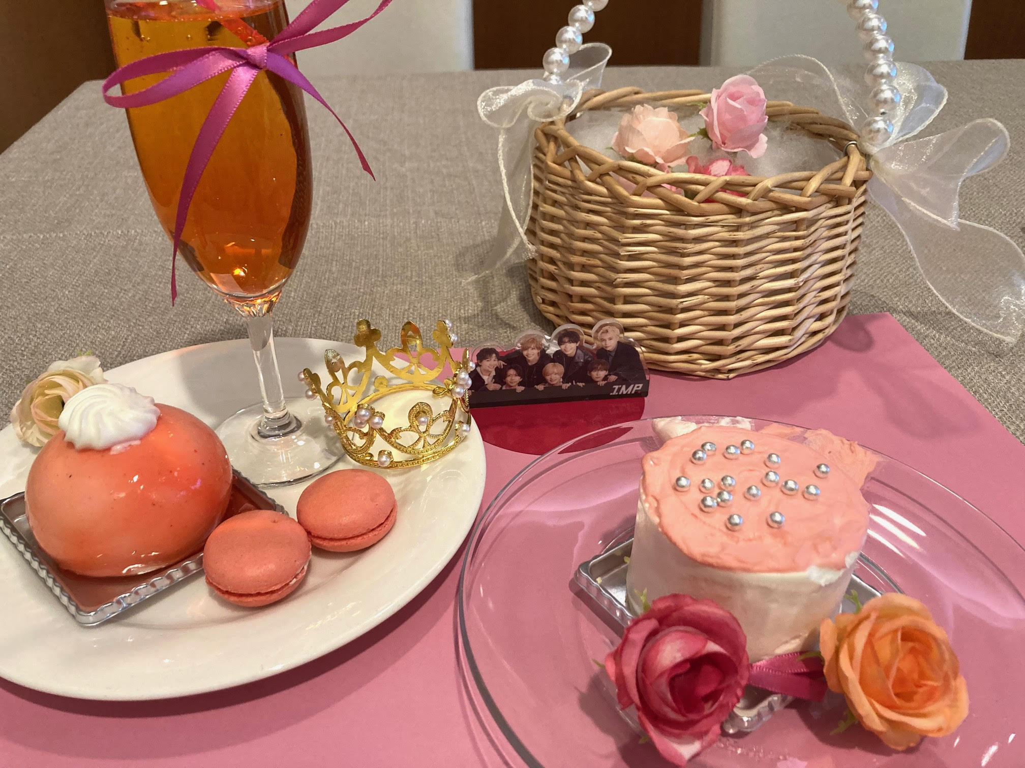 各テーブルでは皆さんそれぞれ推しのアクスタやぬいぐるみを持参し、可愛くスイーツと共に盛ってフォト撮影をしていました。
