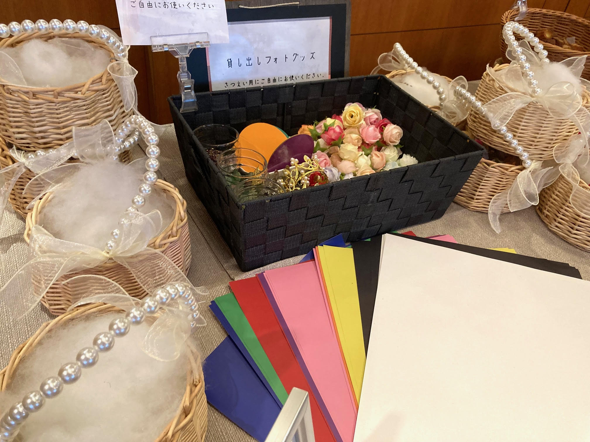 何とブッフェ内には撮影用の小物、バスケットや王冠、造花などを無料でレンタルしてくれるんですー!