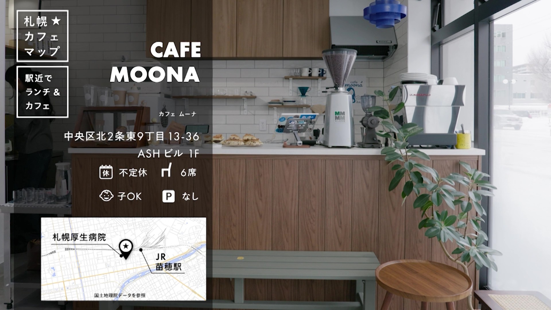 札幌厚生病院の向かいに2025年8月にオープンした「CAFE MOONA(カフェ ムーナ)」です。