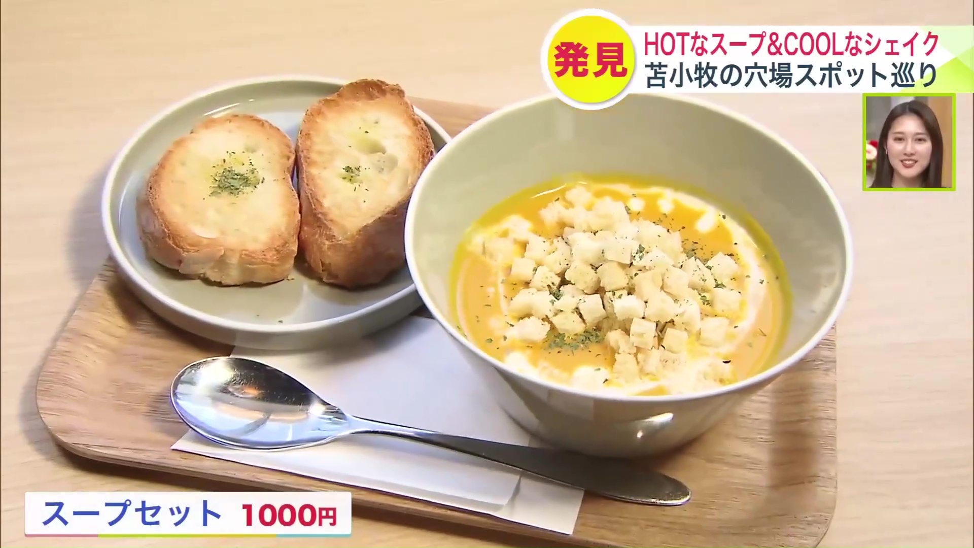 Boogie店長の小倉愛さんのオススメは、北海道産かぼちゃポタージュの「スープセット(1000円)」。