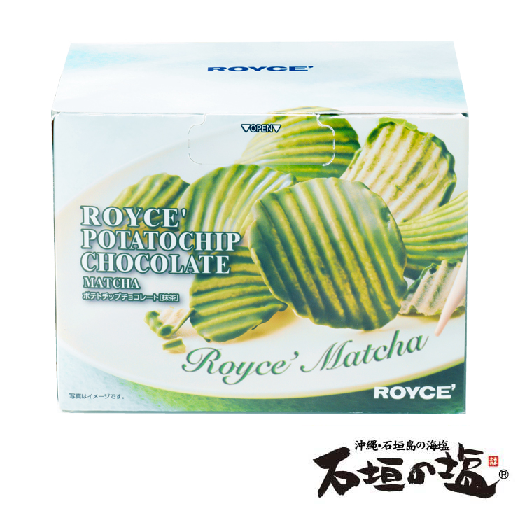 使用しているのは、さわやかな苦みや渋みが特徴の抹茶と、濃厚な旨みや甘みが特徴の抹茶の2種類をブレンドしたチョコレート。「石垣の塩®」使用のポテトチップの片面にたっぷりとコーティングされています。