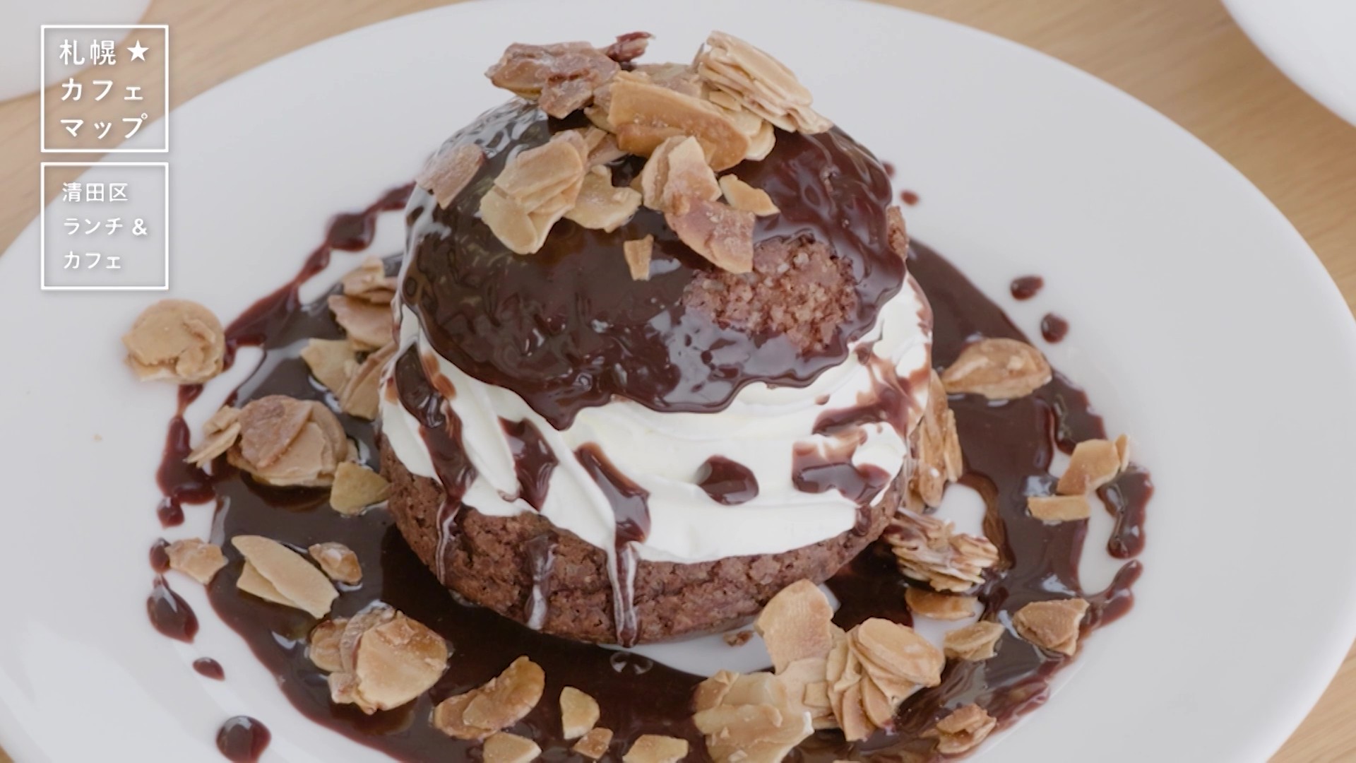 フランス産チョコレートの温かなソースの上にトッピングされた、キャラメリゼされたアーモンドの香ばしさもたまりません。「ぜいたくですね。これを食べたら1日ハッピー」(柴田アナウンサー)