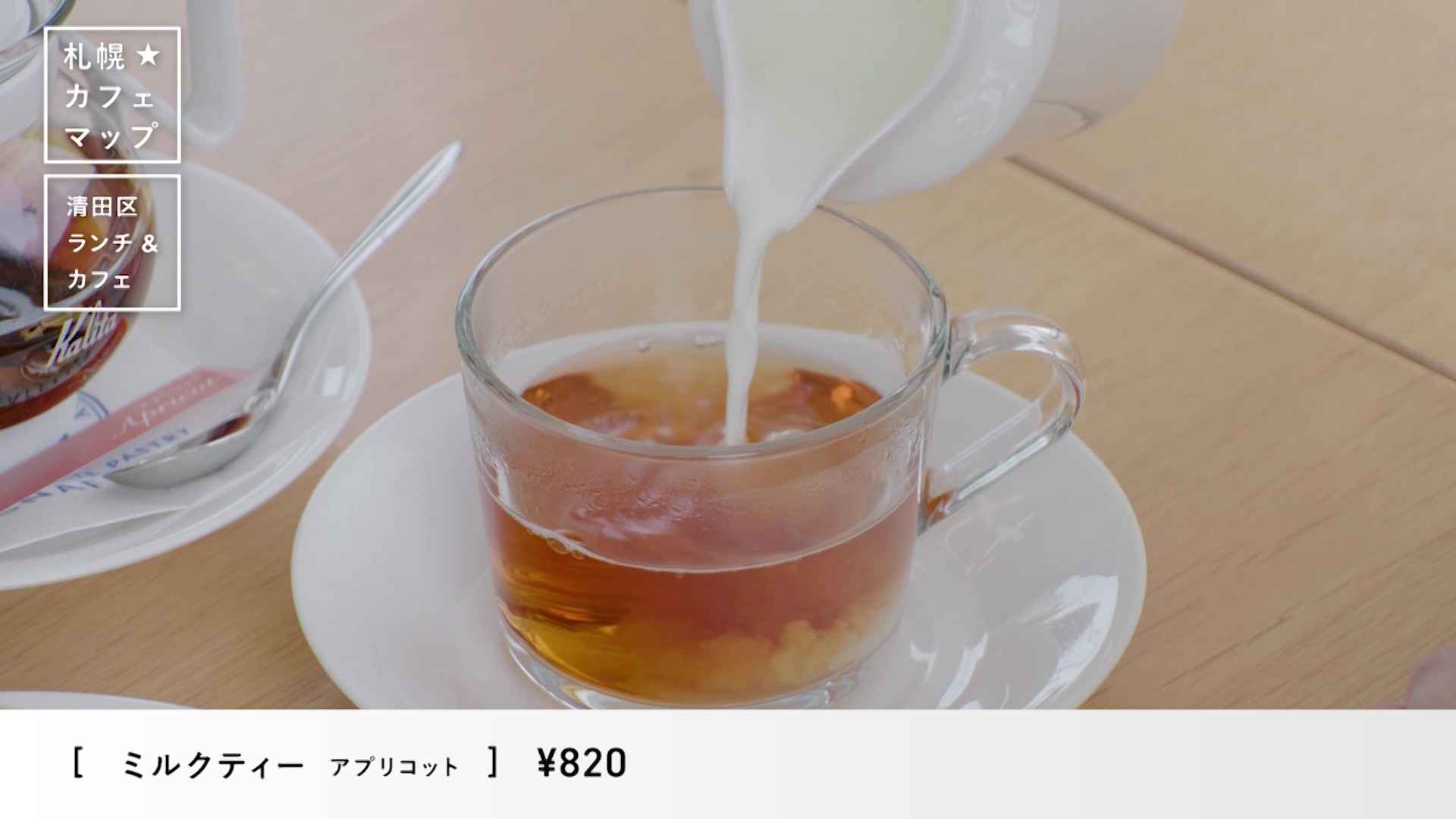 一緒に味わったのが、「ミルクティー アプリコット」(820円)。ティーポットで提供されるアプリコットティーに、温めたミルクをたっぷり注ぐと、柔らかな香りが立ち上ってきます 。
