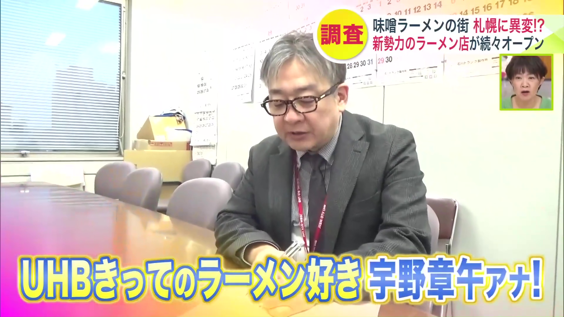 調査したのはUHBきってのラーメン好き宇野章午アナウンサー。今年に入ってから既に20件以上のラーメンを食べているという宇野アナが、「家系」「二郎系」「淡麗系」味噌ラーメンじゃないラーメンの魅力をお伝えします。