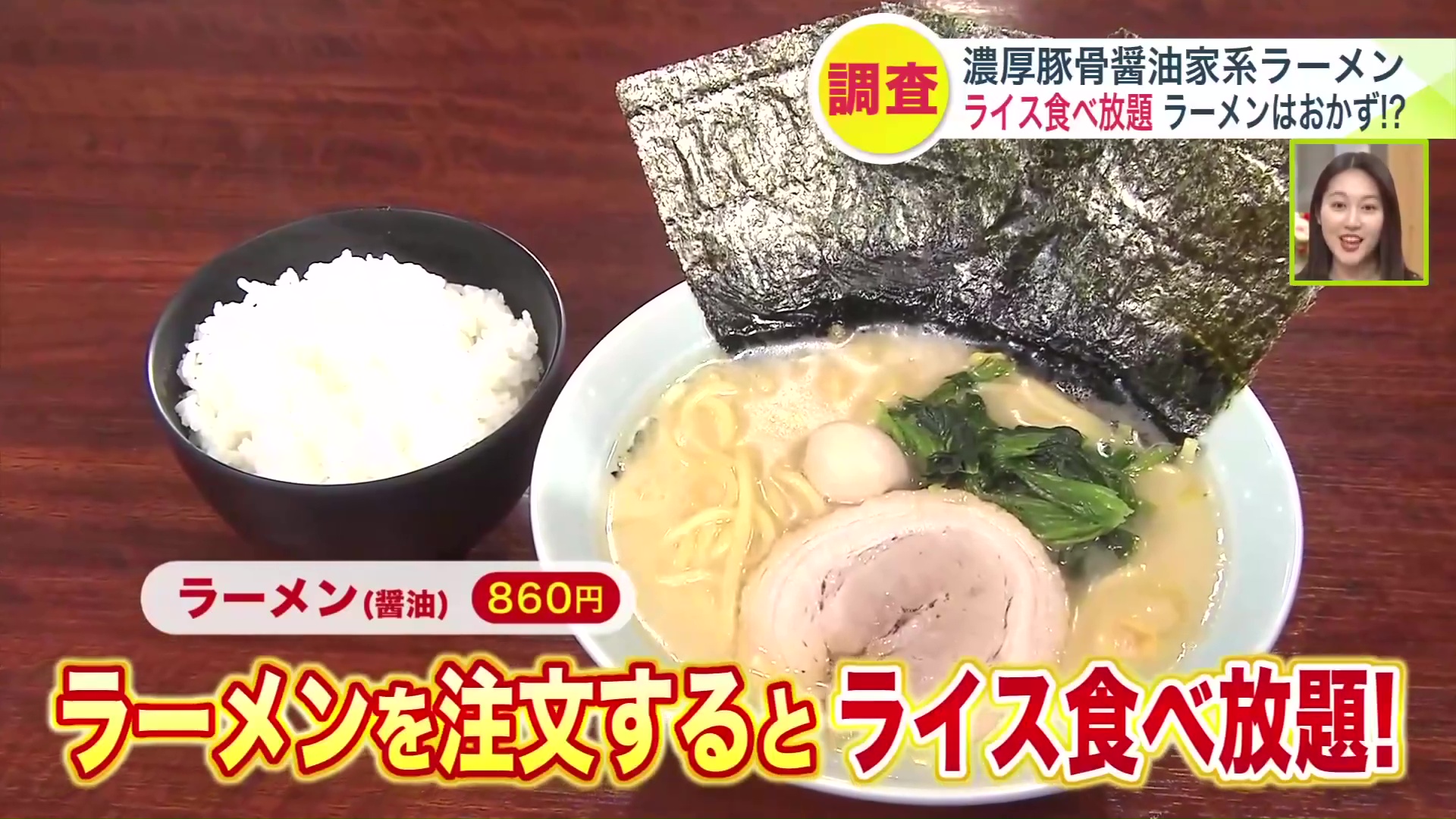 濃厚豚骨醤油「家系」ラーメン注文でライス食べ放題!