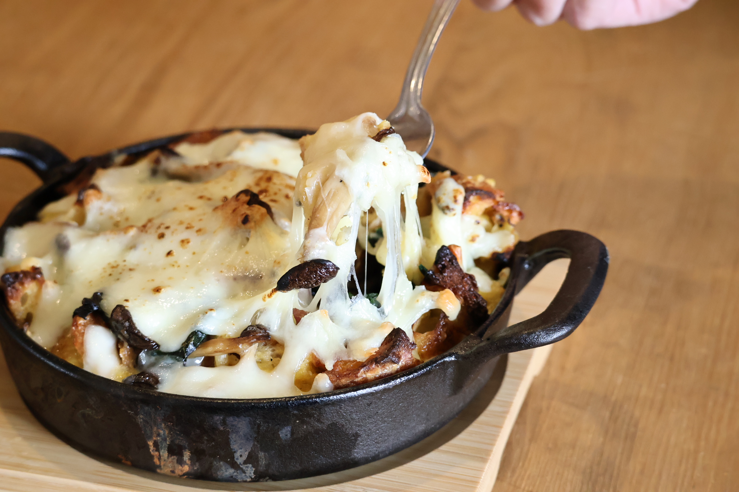 スキレットを使ってオーブンで焼き上げるスタイルで、旬の食材とパンのおいしさが一度に味わえます。