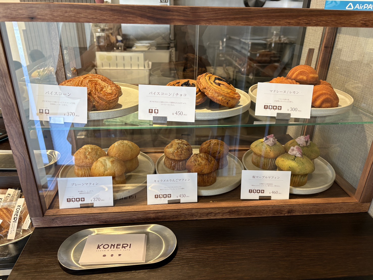 もうひとつ、KONERIの主力商品なのがマフィン。ショーケースには、毎日3種類のマフィンが日替わりで並びます。