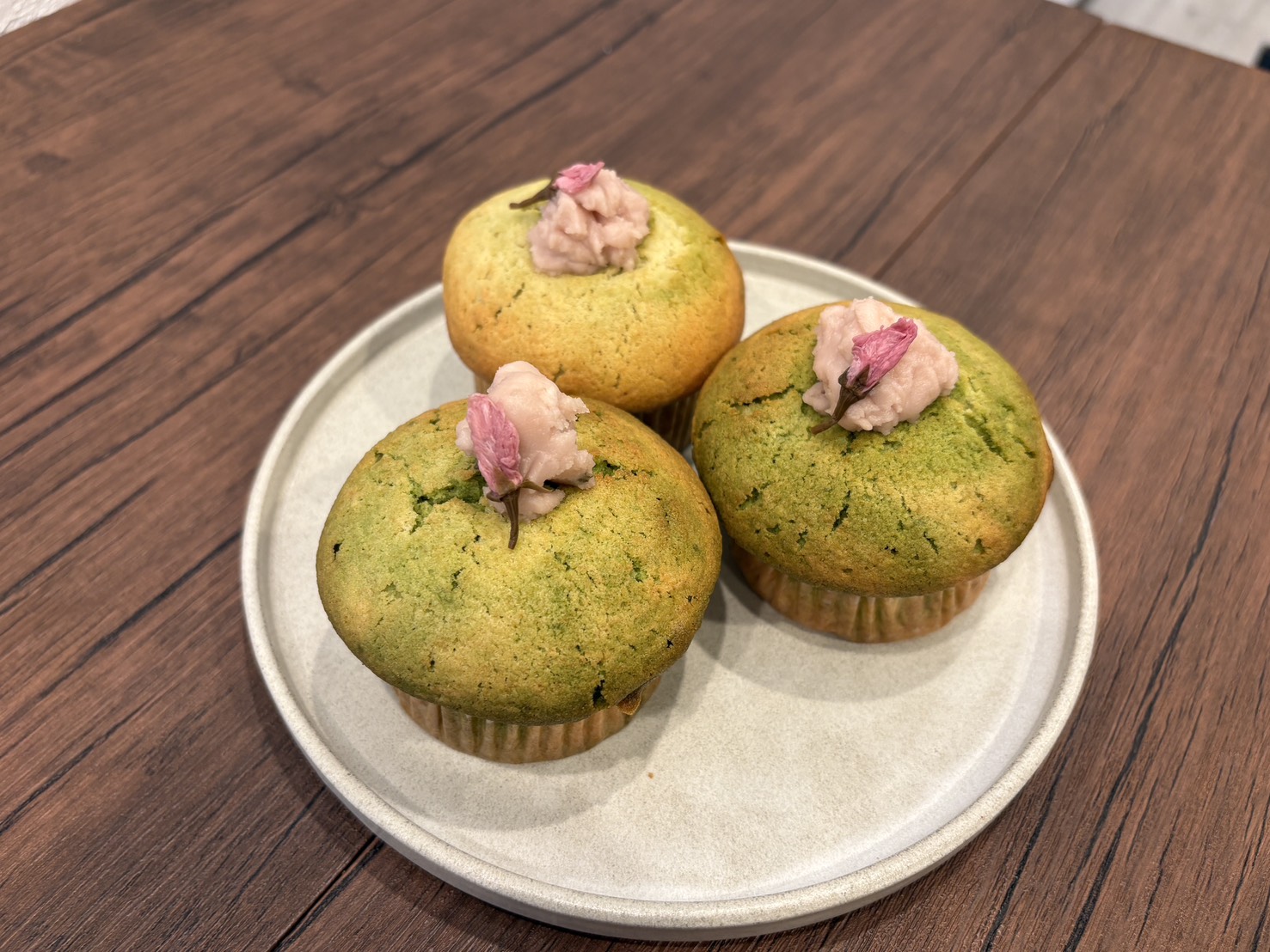 「桜マーブルマフィン 460円(税込)」は、春限定の商品。日本茶専門店「玉翠園」の熟成抹茶を加えた生地は、鮮やかな緑色が印象的で、春らしい見た目も魅力です。