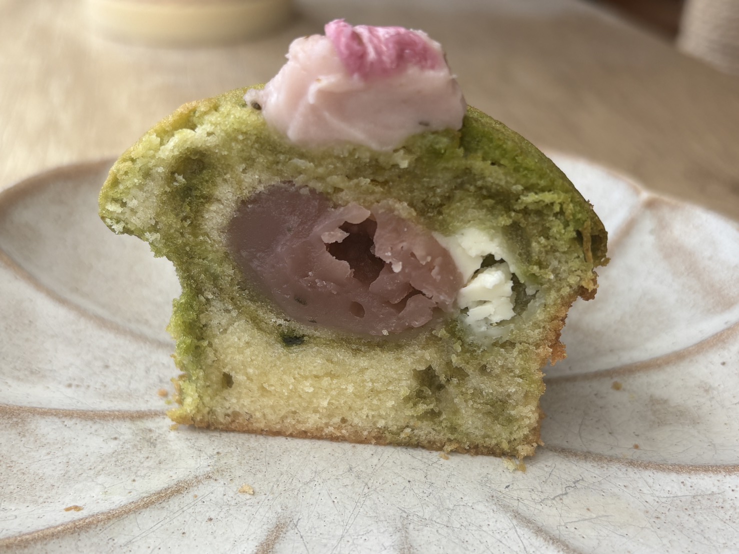 上品な甘さの桜あんとなめらかなクリームチーズは相性抜群。深みのある抹茶が、全体の甘さを引き立てています。