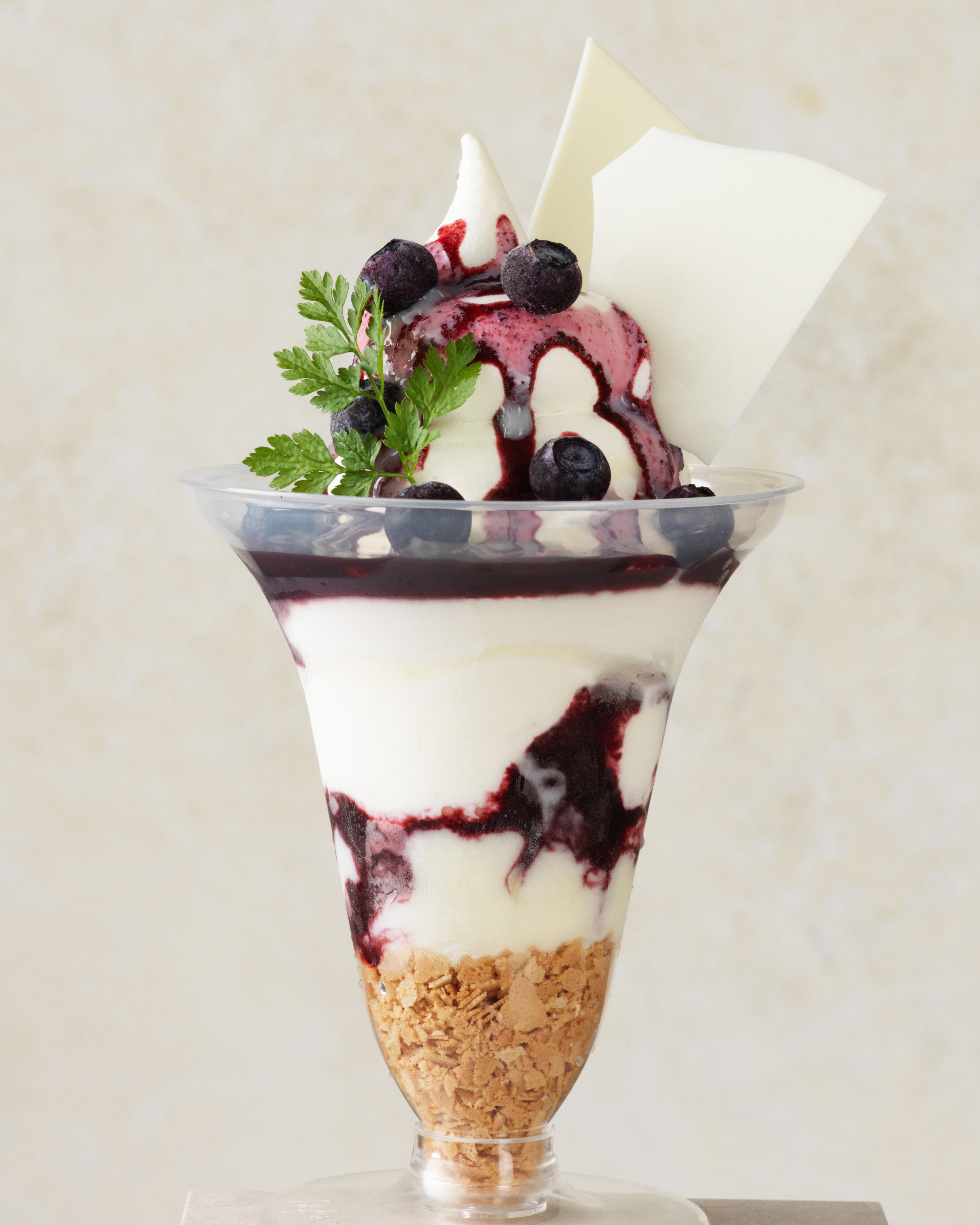 コク深いジャージーミルクアイスに、ブルーベリーソースとミルクソースをトッピング。