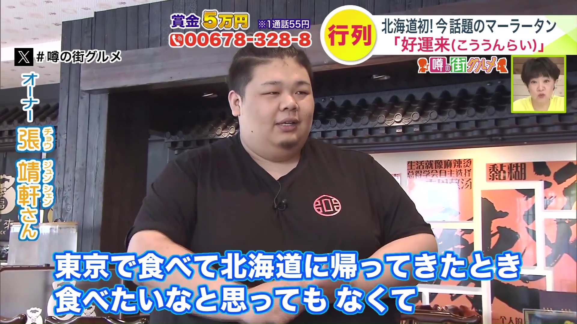 中国出身のオーナー、張靖軒さんは「東京で食べて、北海道に帰ってきたとき食べたいなと思ってもお店がなくて、『自分でやるしかない!』と思って始めた」と話します。